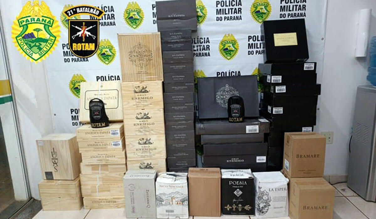 No carro foram localizadas 59 caixas de vinho da Argentina