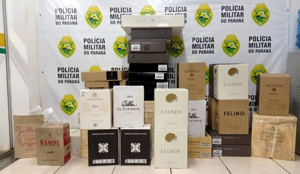 Durante revista no veículo, foi constatado que estava carregado com 44 caixas vinho oriundo da Argentina, totalizando 216 garrafas.