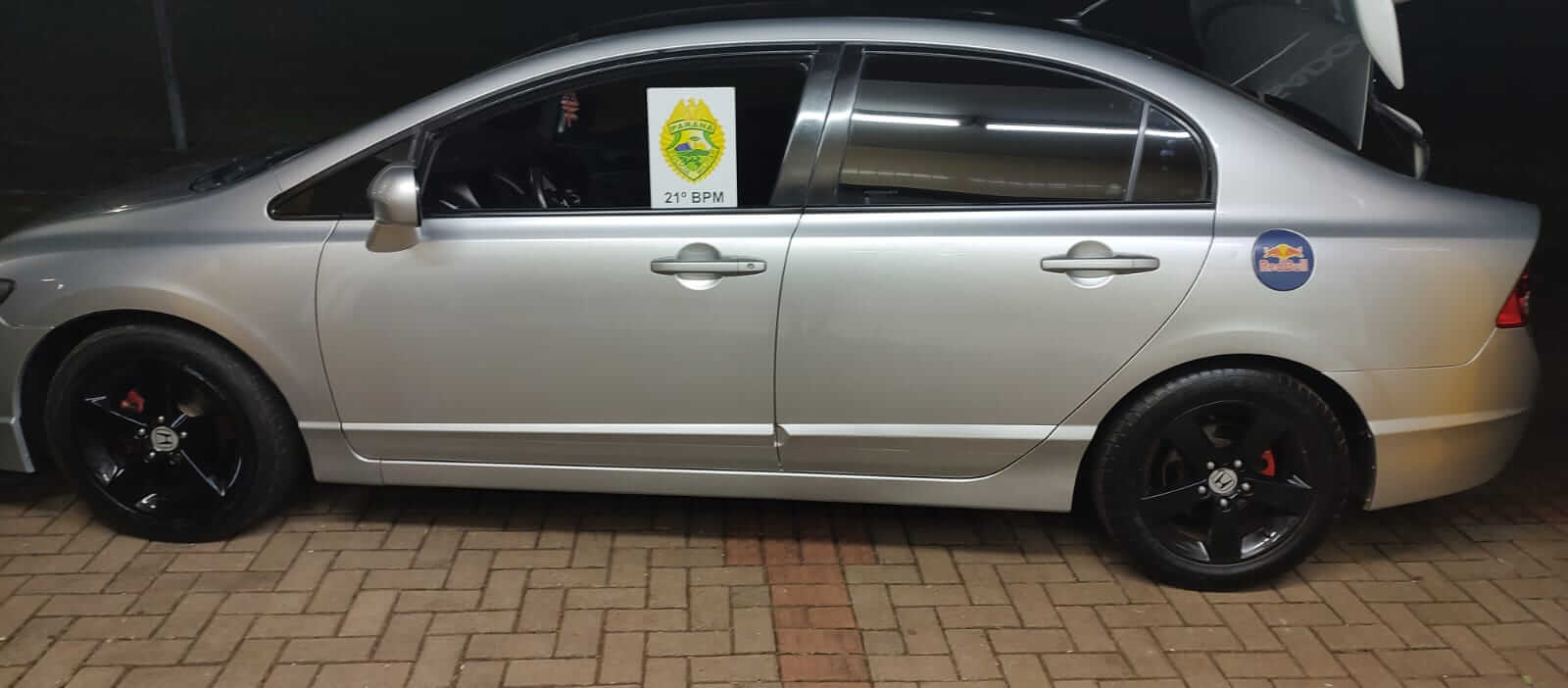 Conforme as informações, uma equipe da Polícia Militar realizava patrulhamento na avenida Brasil, próximo ao antigo campo do bairro Entre Rios, quando foram avistados três homens próximos a um veículo Honda Civic, em atitude suspeita.