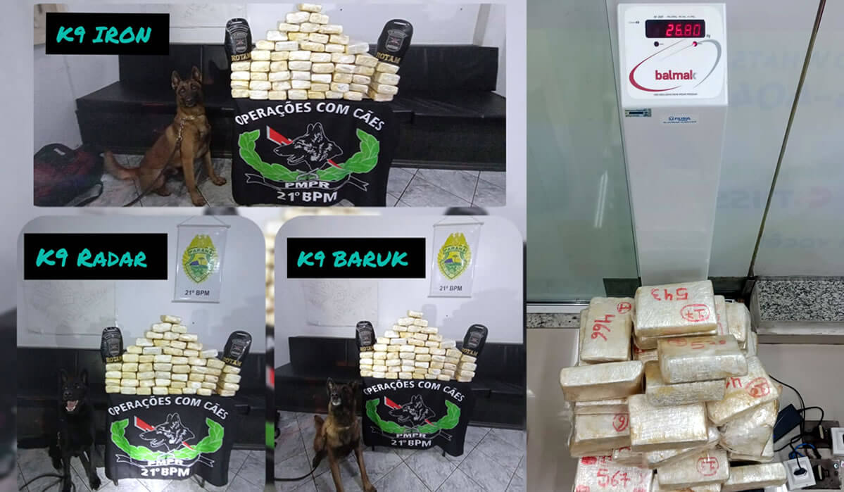 A Equipe Rotam Canil, realizava na madrugada desta quarta-feira (14), Operação na Rodoviária Municipal de Francisco Beltrão, quando procedeu com revista no bagageiro em um ônibus de linha que tinha como destino a cidade de Cruz Alta/RS, aplicando os cães de faro Baruck, Radar e Iron, que indicaram positivamente uma mala de cor preta.