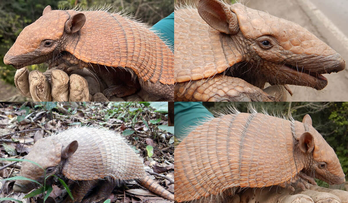 Dois tatus-peba (Euphractus sexcinctus) foram resgatados durante as obras de restauração, adequação de capacidade e eliminação de pontos críticos da BR-163, em Dionísio Cerqueira.