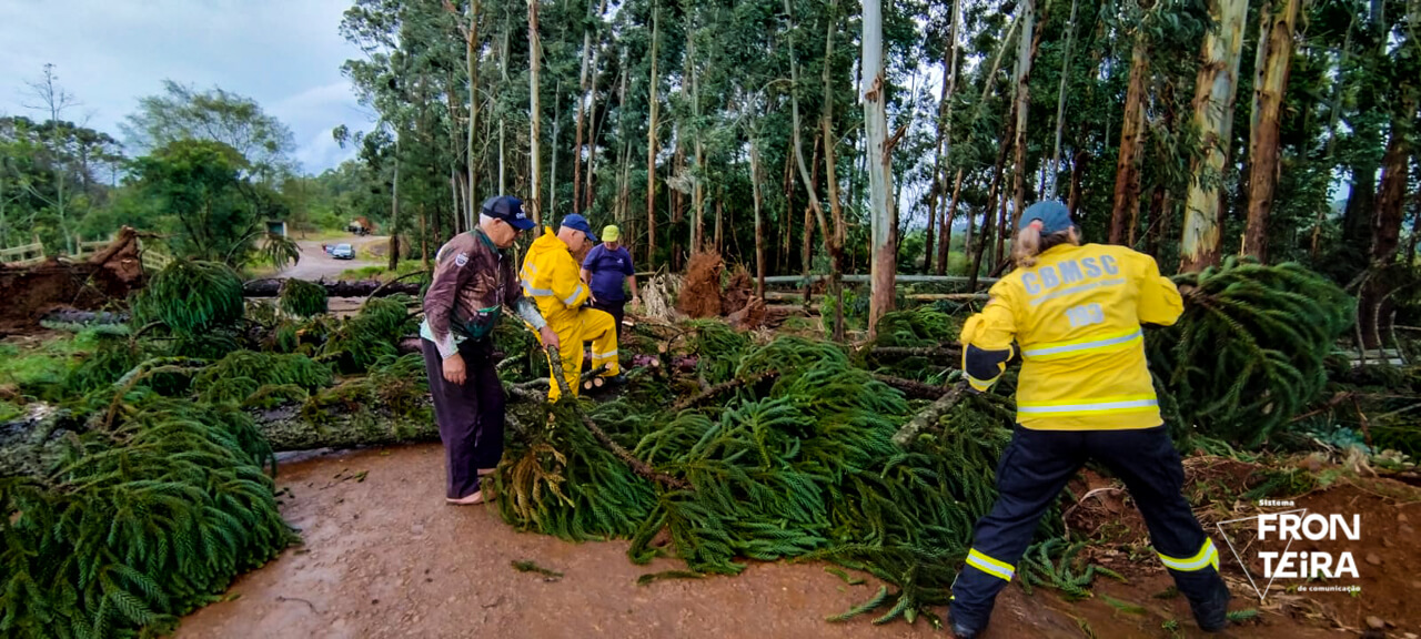 Em São José do Cedro, o Corpo de Bombeiros registrou o atendimento a 14 famílias que tiveram suas casas destelhadas, nos bairros Promorar e São Cristóvão. Danos também foram registrados em Guarujá do Sul.