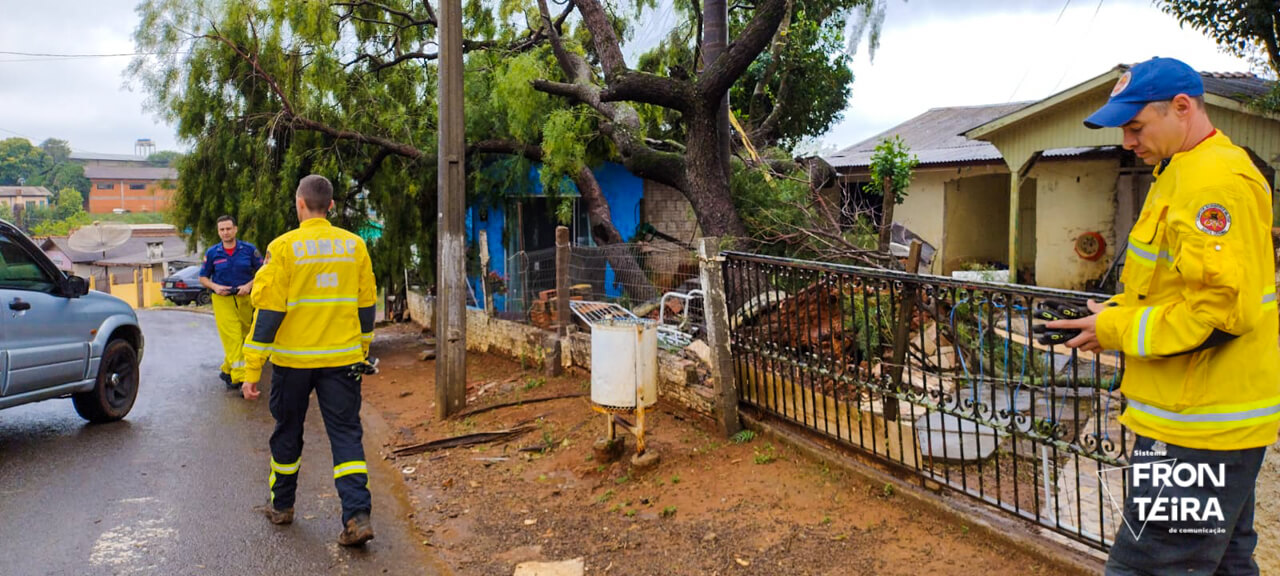 As equipes do Corpo de Bombeiros também auxiliaram em ocorrências de queda de árvores, tanto na região central das cidades gêmeas como no interior.