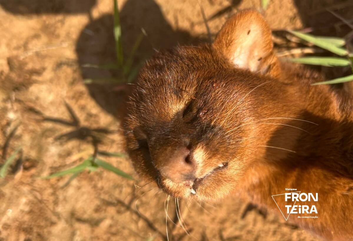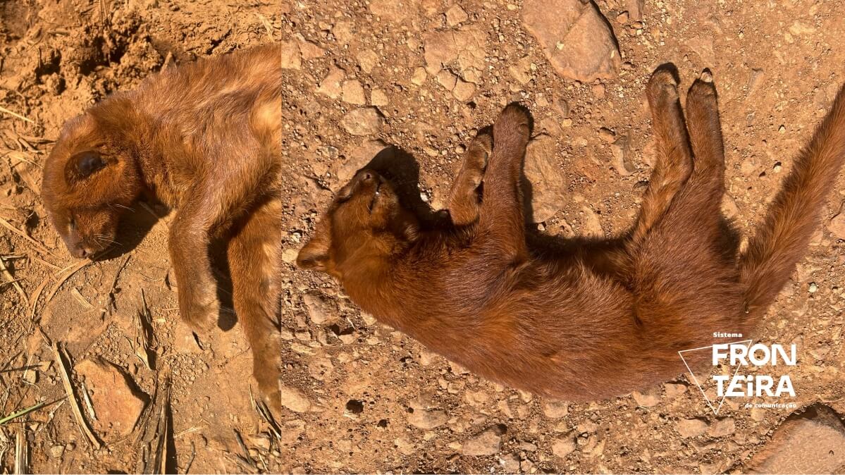 Um gato-mourisco de cor vermelha foi encontrado morto em uma estrada rural, no interior de Guarujá do Sul, no Extremo-Oeste de Santa Catarina. O registro foi feito pelo policial Denis Sanches, na tarde desta segunda-feira (18).