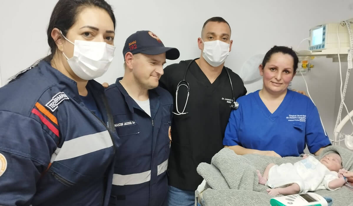 Durante o deslocamento ao Hospital Regional Terezinha Gaio Basso, de São Miguel do Oeste, a situação teve uma evolução, sendo necessário que a equipe de socorro juntamente com a equipe médica realizassem o parto de forma emergencial dentro da ambulância.