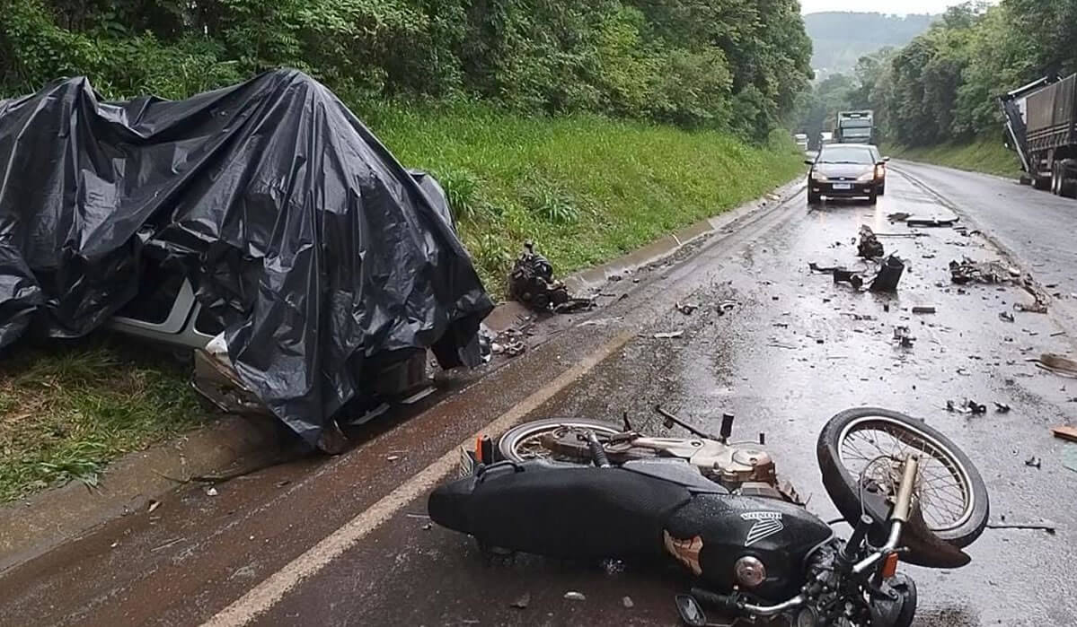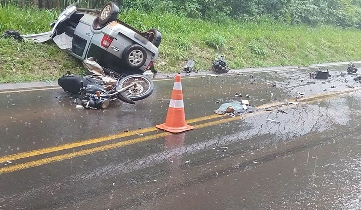 No local houve um acidente do tipo colisão frontal envolvendo uma Ford Ecosport emplacada em Santo Antonio do Sudoeste, um caminhão Volvo FH 540, de Maravilha, e ainda uma motocicleta que acabou sendo atingida por peças que se soltaram da caminhonete.