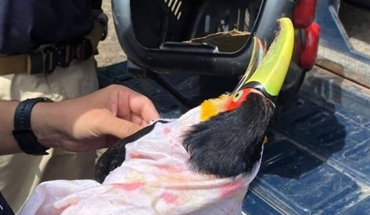 A Polícia Rodoviária Federal resgatou um tucano ferido, na manhã de quarta-feira (10), enquanto realizava rondas pela BR-153, em Concórdia, no Oeste catarinense.