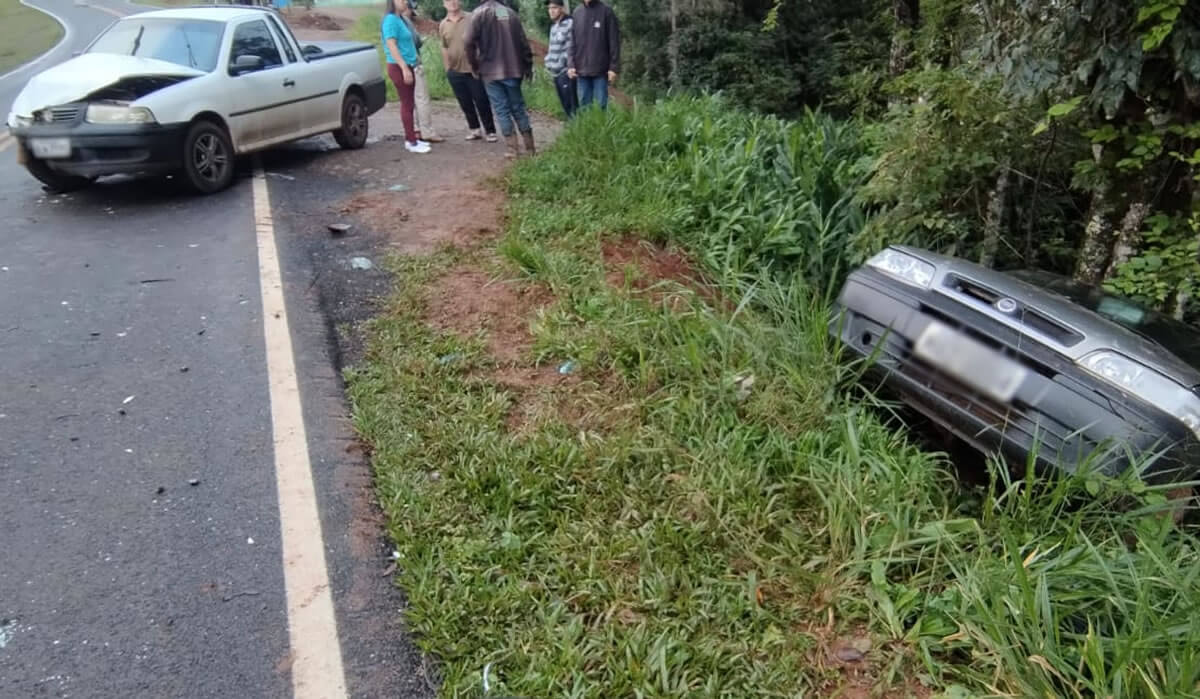 No local houve uma colisão envolvendo um Fiat Palio, placas de Barracão e uma VW Saveiro de Bom Jesus do Sul.