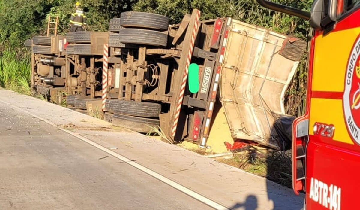O acidente de trânsito do tipo tombamento/lateralização de carreta ocorreu na Linha Esquina Derrubada