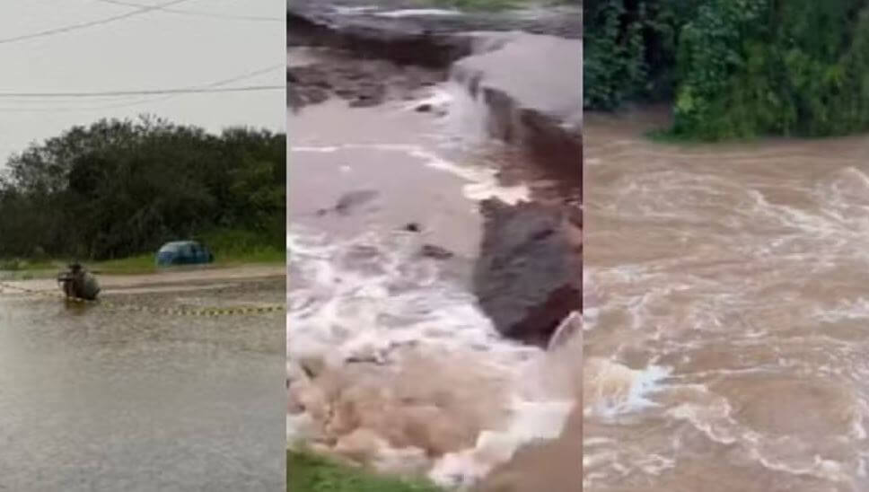 Na cidade de Sombrio, várias ruas ficaram alagadas e a ponte da marginal da BR-101 foi interditada após apresentar rachaduras entre a noite de domingo e a madrugada desta segunda. Moradores precisaram deixar as casas.
