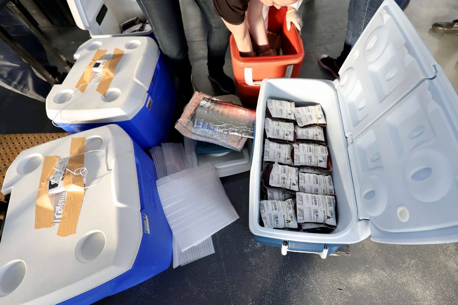 O governo catarinense, por meio do Centro de Hematologia e Hemoterapia de Santa Catarina (Hemosc), enviou na madrugada de sábado, dia 18, mais 52 bolsas de sangue para o Rio Grande do Sul. Os itens saíram de Florianópolis com auxílio do Samu.