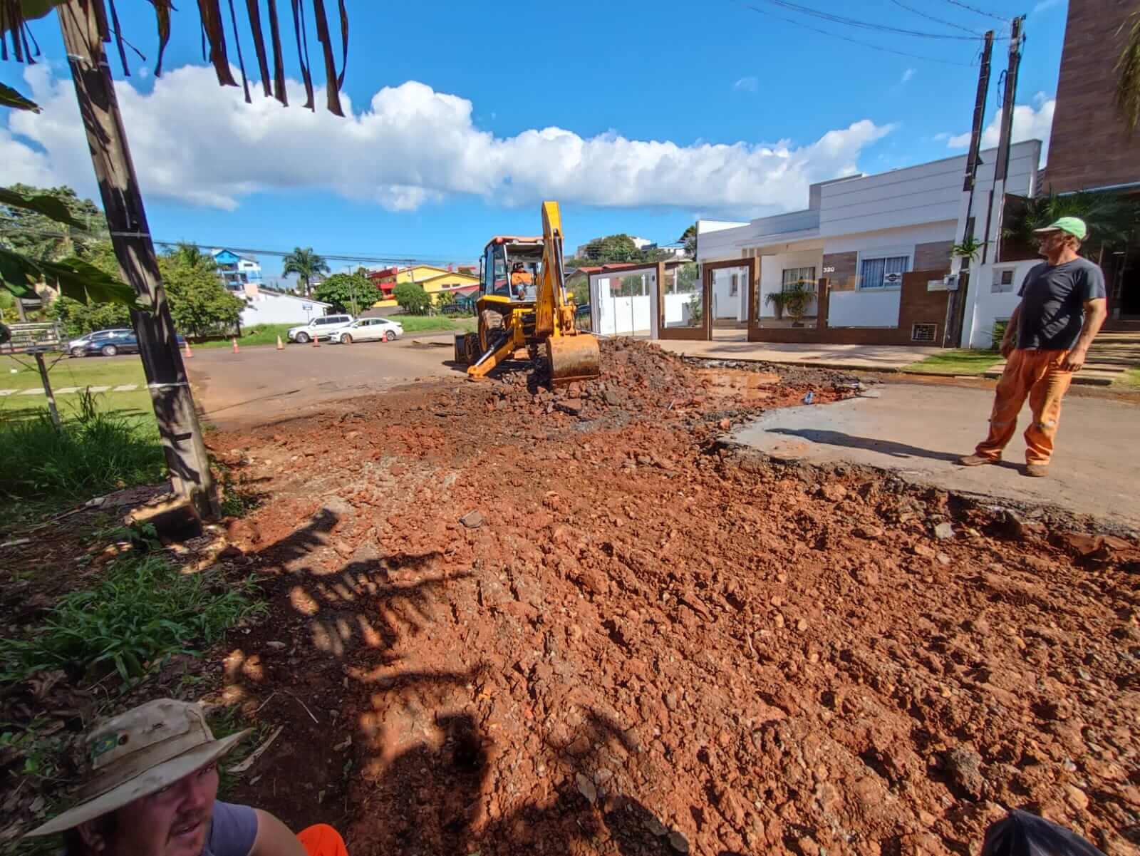 Na manhã desta quinta-feira (23), iniciaram-se as obras de revitalização nas ruas Mario Claudio Turra e Rio Grande do Sul, em Dionísio Cerqueira. Essas vias, de grande importância para o município, passarão por um processo completo de drenagem e recapeamento asfáltico.