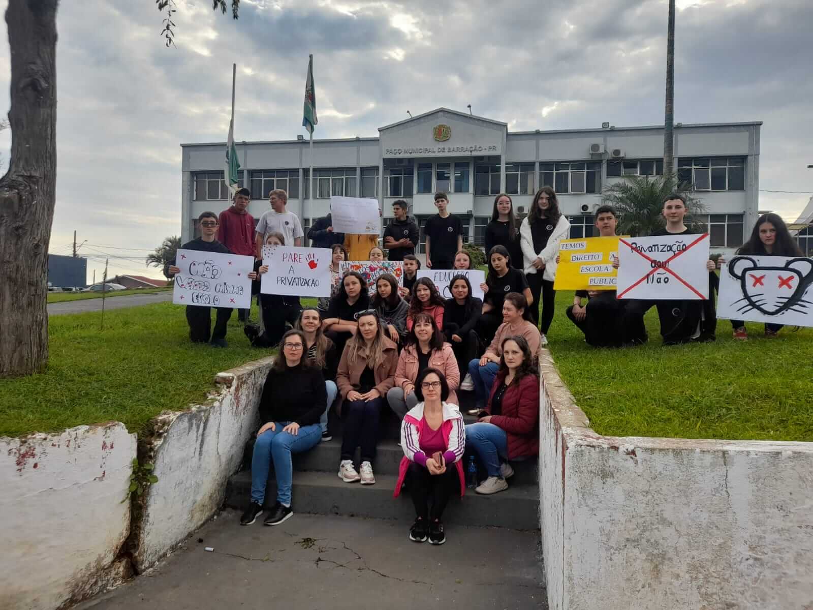Professores e estudantes da rede estadual de ensino em Barracão aderem à greve em protesto contra a privatização das escolas públicas no estado.
