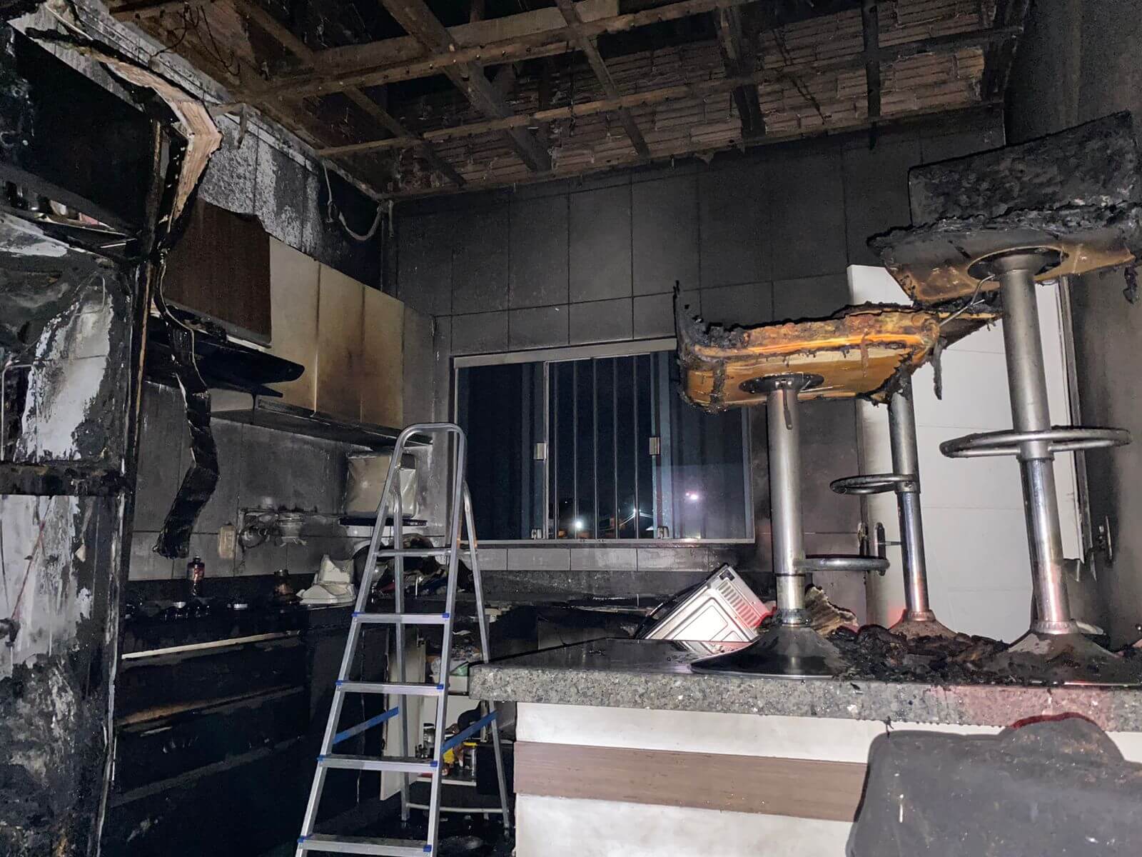 Como os proprietários não estavam presentes, a equipe precisou arrombar a porta dos fundos para iniciar o combate às chamas.