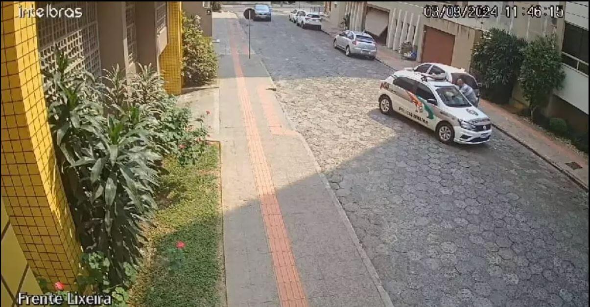 Vídeos flagraram o momento do homicídio. Em uma das imagens, é possível ver a viatura se aproximando da calçada onde o suspeito aparece caminhando.