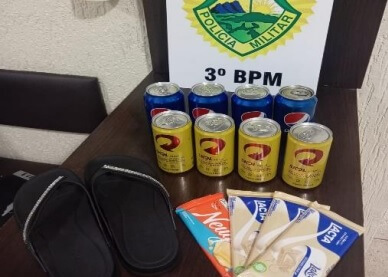 Conforme a Polícia Militar, o responsável pelo estabelecimento informou que há algum tempo vinham monitorando uma funcionária, e ao final do expediente, quando ela estava saindo, verificaram sua bolsa, onde foram encontradas 4 latas de refrigerante, 4 latas de cerveja, 4 barras de chocolate e um par de chinelos furtados no estabelecimento.