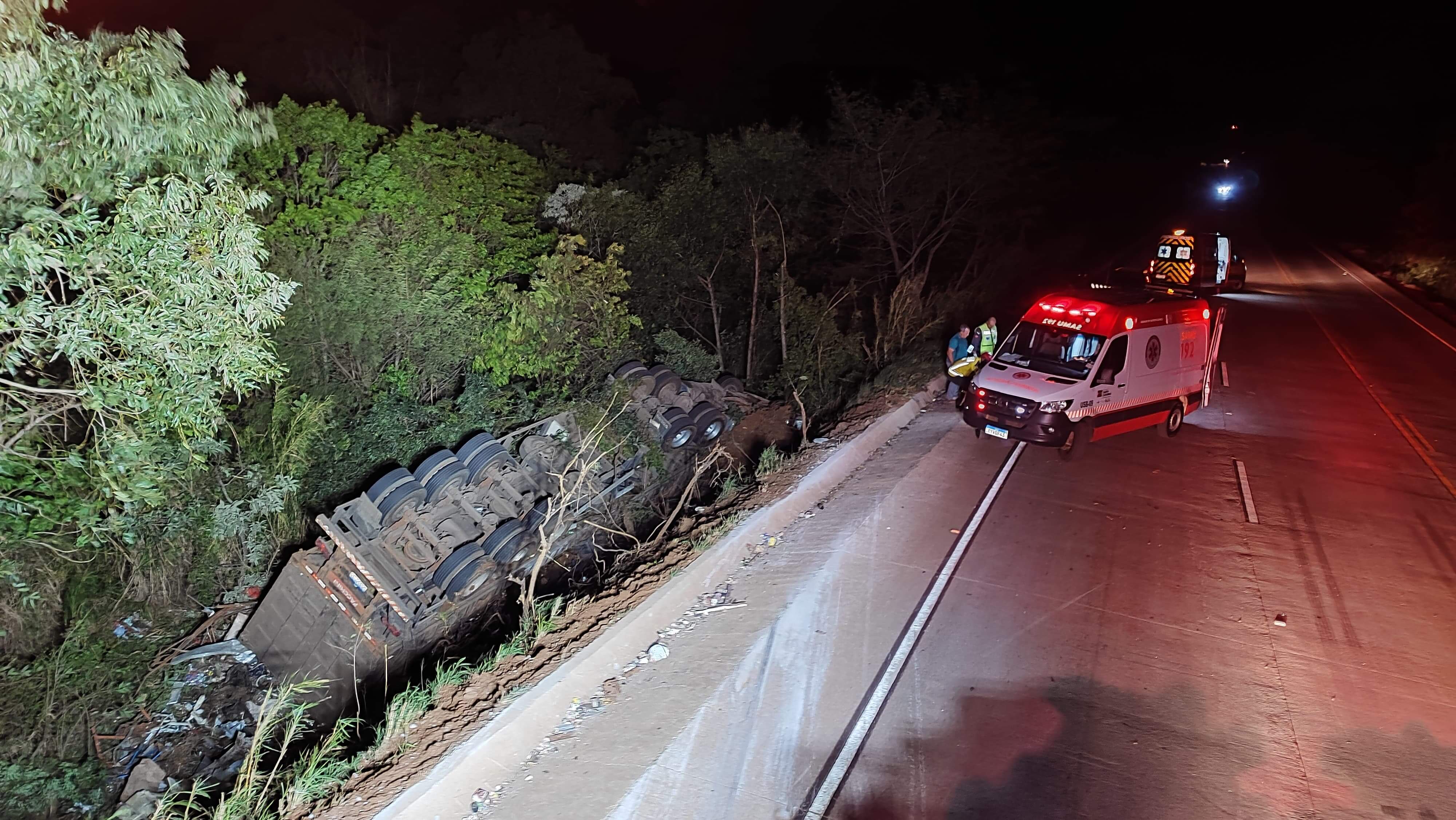 Na noite de terça-feira (17), o Corpo de Bombeiros Militar atendeu a um acidente na Serra da Maria Preta, na BR-163.