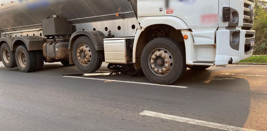 De acordo com as informações apuradas no local, a colisão envolveu uma Shineray, em que a vítima estava, e um caminhão de ração, com placa de Matelândia (PR). Após o impacto, a motoneta foi parar embaixo do caminhão.