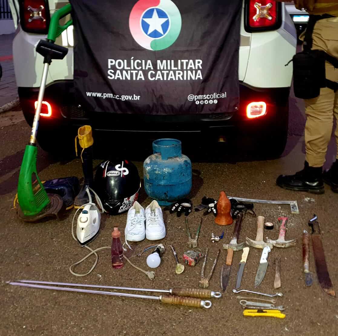 Durante a abordagem, os policiais encontraram diversos objetos com ele, incluindo ferramentas, utensílios e produtos alimentícios. O jovem confessou que se tratavam de itens furtados de uma residência no Bairro Alvorada, onde, além de roubar, aproveitou para fazer um lanche com os produtos disponíveis.