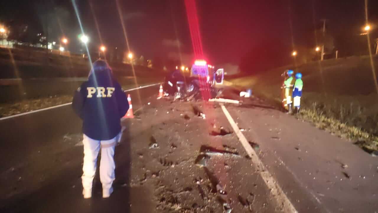 De acordo com a PRF, o condutor do carro perdeu o controle da direção, capotou várias vezes e bateu em dois caminhões que seguiam pela pista sentido contrário.