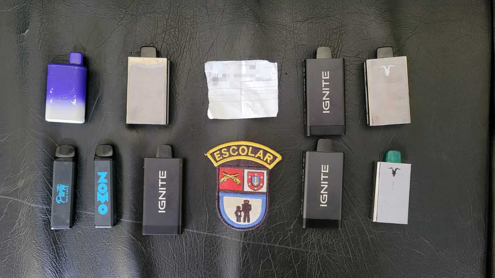 Conforme a PM, um aluno do 8º ano saiu da escola com algo em mãos foi até uma área de mata e retornou sem nada. A equipe chegou a realizar buscas, mas não localizou nada. Na sequência funcionários da escola localizaram os cigarros eletrônicos escondidos ao lado da caixa da água.