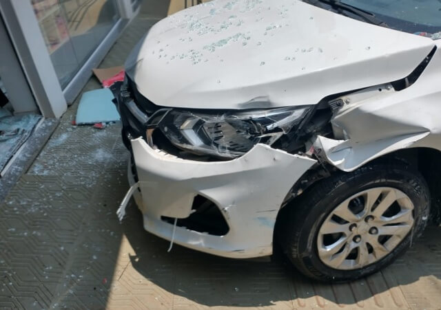 As autoridades foram acionadas para apurar as circunstâncias do incidente, e o estabelecimento sofreu danos materiais. Não houve mais feridos, e a condutora passa bem.