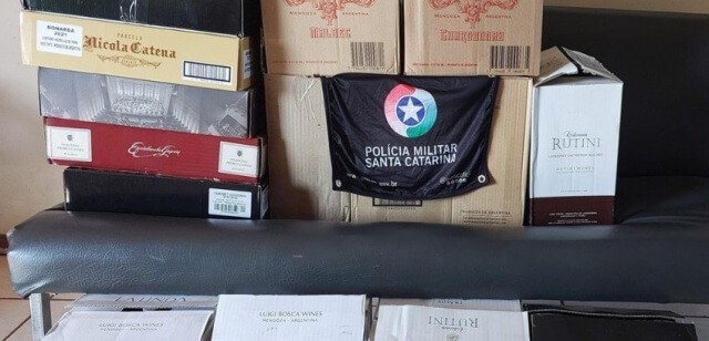 Na última segunda-feira (28), a Polícia Militar de Cunha Porã, com o apoio da Polícia Militar de Maravilha, apreendeu uma carga de 80 garrafas de vinho e um galão de azeite de oliva em uma abordagem a um Fiat Uno Mille suspeito de descaminho na BR-158.
