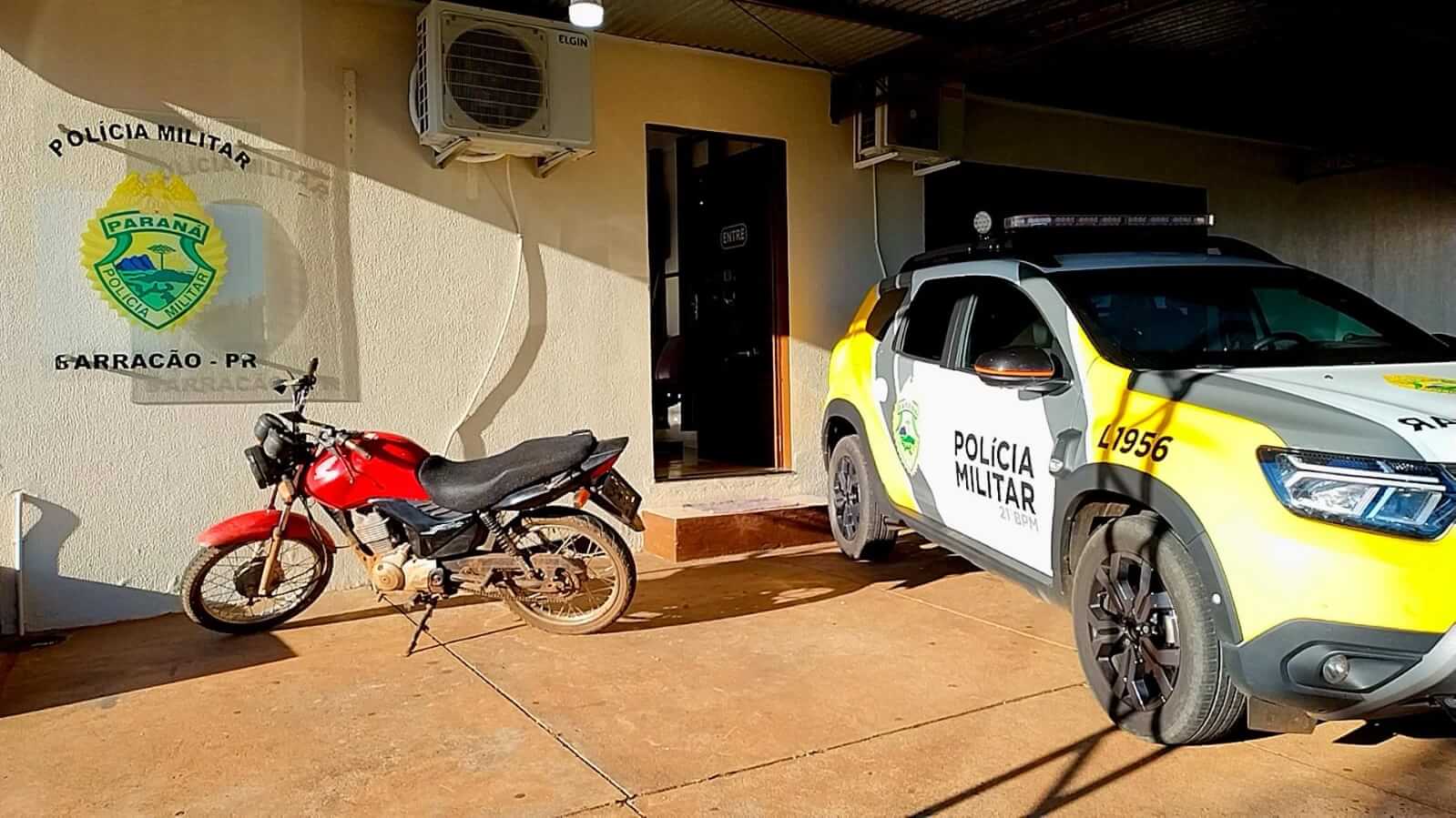 Na madrugada deste domingo (10), a equipe da Polícia Militar de Barracão realizava patrulhamento pela cidade quando, na rua Divisor, avistou um homem sem capacete a bordo de uma motocicleta sem placa. Imediatamente foi dada ordem de parada sendo lograda a abordagem já nas proximidades do auto posto Barracão.