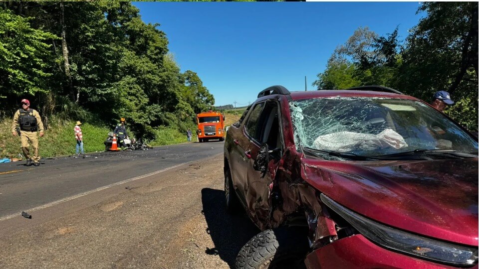 A batida envolveu um carro Fiat Toro e uma moto BMW R1 250, que vinha de Osasco, São Paulo. O acidente ocorreu na entrada da comunidade Linha Água Boa Vista, quando o motorista do Fiat Toro, um senhor de 73 anos, fez uma manobra para entrar em uma estrada rural e acabou atravessando a frente da moto.