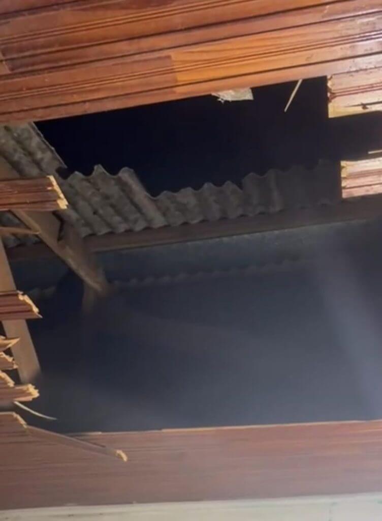 Segundo relatos, ele caminhava sobre o telhado de uma casa com a intenção de cometer furto, quando a estrutura cedeu e ele caiu dentro da residência.