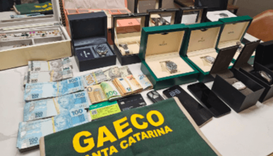 Segundo o MPSC (Ministério Público de Santa Catarina), foram apreendidos sete celulares, dois computadores, mais de R$ 91 mil em espécie e uma grande quantia em moedas estrangeiras.