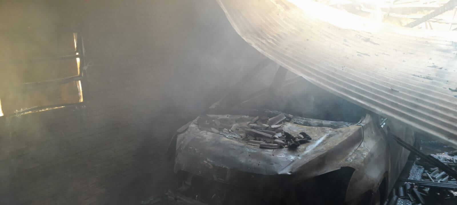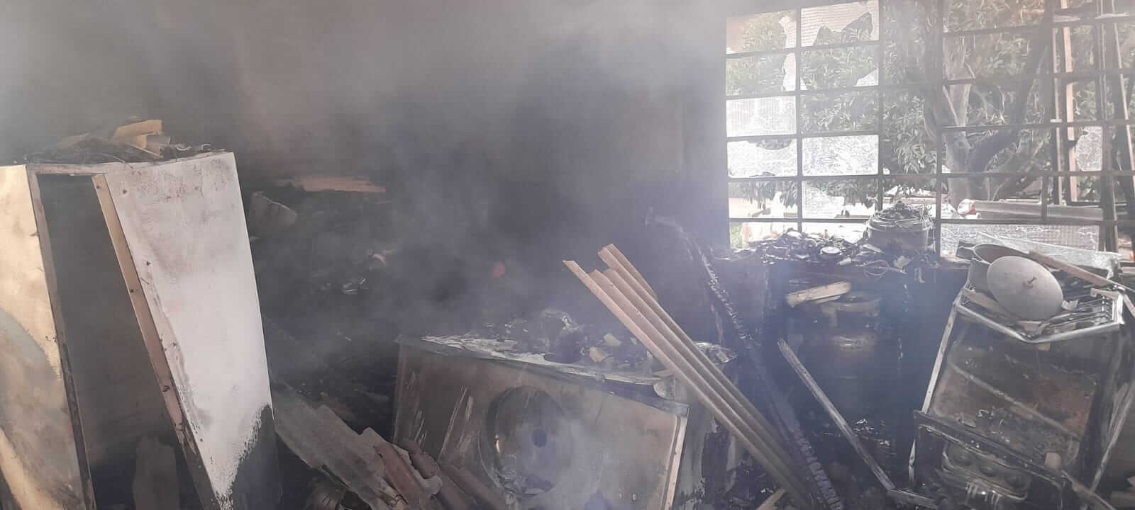 Os bombeiros conseguiram conter o fogo na garagem, impedindo que ele se propagasse para o interior da casa de madeira e para a residência vizinha, construída em alvenaria. No entanto, a casa vizinha sofreu danos causados pela fumaça intensa, resultando no colapso da parede lateral e parte da estrutura do teto.