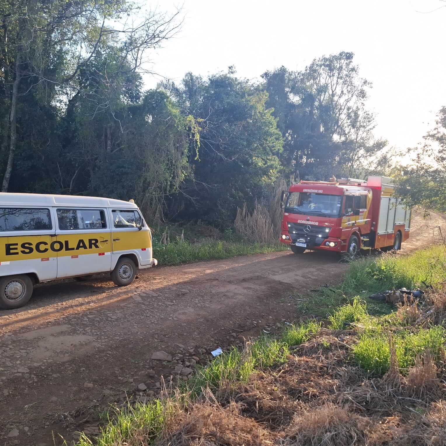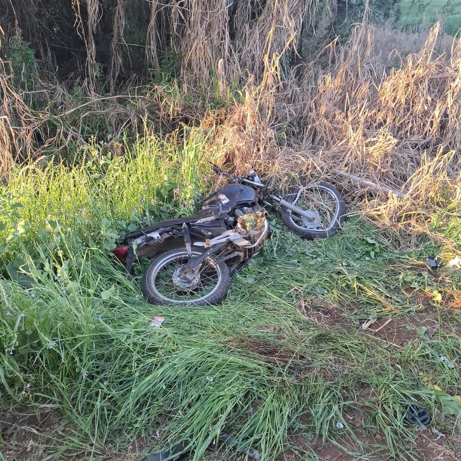 No local, os bombeiros confirmaram uma colisão frontal entre uma motocicleta e uma Kombi escolar. O condutor da motocicleta foi encontrado às margens da via, em decúbito lateral esquerdo, consciente, mas desorientado. Ele apresentava escoriações nos membros superiores e inferiores, além de sangramento na face, com suspeita de traumatismo cranioencefálico (TCE).