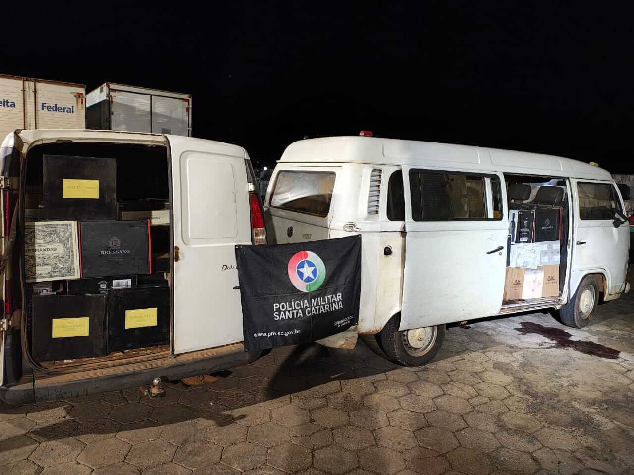 Os carros, com a suspensão visivelmente rebaixada, chamaram a atenção da polícia e, ao serem vistoriados, foram encontrados cerca de 300 caixas de vinho de origem estrangeira, introduzidas no país sem o devido trâmite aduaneiro.
