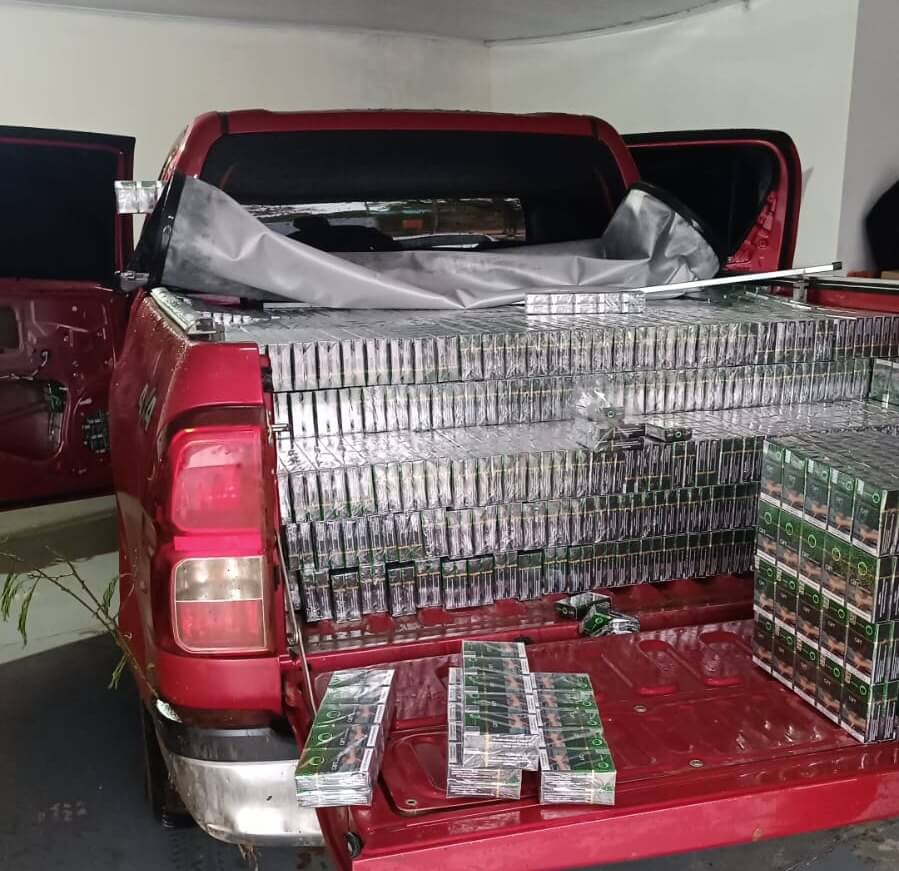 Uma caminhonete carregada com cigarros contrabandeados foi apreendida na manhã desta quinta-feira (4) por uma equipe da 6ª Companhia de Polícia Rodoviária Estadual, durante patrulhamento na rodovia PR-483, em Francisco Beltrão, no sudoeste do Paraná.