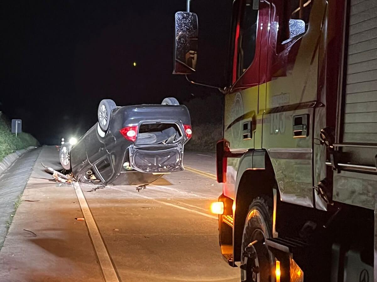 Segundo informações dos bombeiros, o Focus capotou após uma colisão lateral. O condutor, de 49 anos, foi encontrado caído sobre a pista, consciente, porém desorientado, apresentando escoriações, sangramento nasal e suspeita de fratura nas costelas, além de possível hemorragia interna. Ele recebeu atendimento no local, foi imobilizado em maca rígida, utilizou colar cervical, recebeu oxigênio e foi conduzido ao hospital de São José do Cedro para avaliação médica.