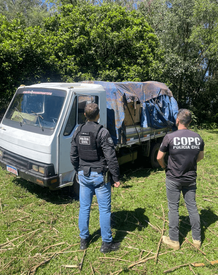 O caminhão e a carga de cigarros foram encaminhados à Receita Federal e à Polícia Federal, enquanto as armas ficaram sob custódia da Polícia Civil para as providências legais cabíveis.