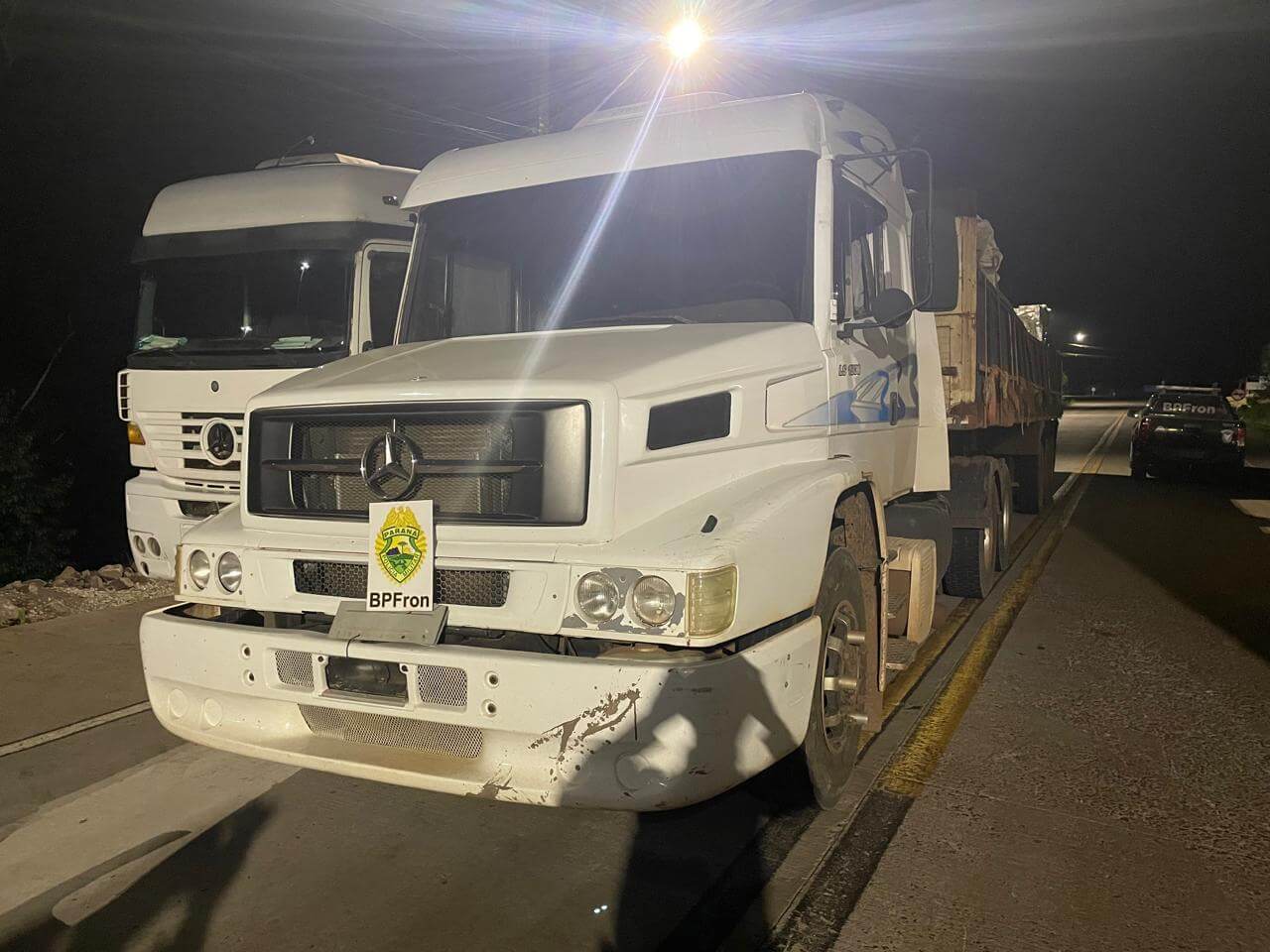 A ação ocorreu no âmbito da Operação Protetor de Divisas e Fronteiras, quando os policiais visualizaram um caminhão trator Mercedes-Benz LS1938, de cor branca, utilizando uma passagem clandestina na fronteira.