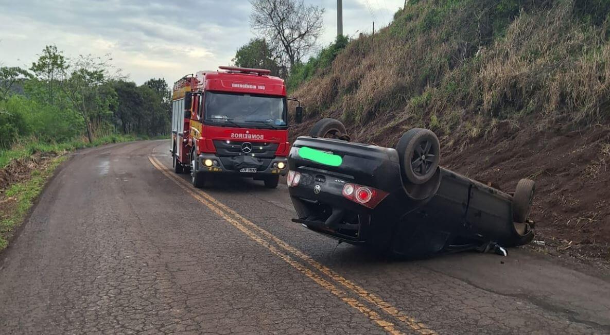 Na tarde desta segunda-feira (15), por volta das 13h37, o Corpo de Bombeiros Militar atendeu a um acidente de trânsito do tipo capotamento na estrada geral da Linha Santa Terezinha, interior de São José do Cedro.
