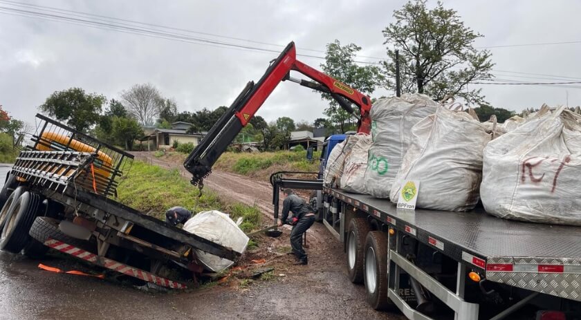 Segundo a polícia, ao tentar abordar o veículo, o motorista ignorou as ordens de parada e tentou fugir. Durante a fuga, na altura da Serra do BNH, ele perdeu o controle do caminhão, que saiu da pista e tombou em um barranco. O condutor abandonou o veículo e não foi localizado.