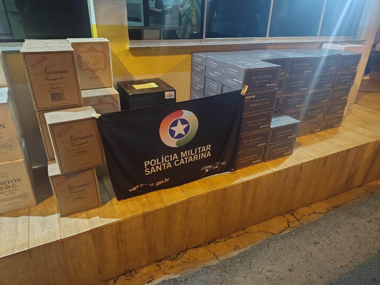 No bagageiro ainda havia uma sacola com diversos eletrônicos e mais três caixas de som grandes, sem ticket de identificação. Questionados, motorista e passageiros, ninguém assumiu a propriedade dos itens, que somam aproximadamente R$ 10 mil. A polícia acionou a Receita Federal, que orientou e acompanhou a apreensão das mercadorias e do veículo utilizado para a prática para encaminhamento até a unidade de Joaçaba. A carga de vinhos totalizou aproximadamente mil garrafas, segundo a polícia.