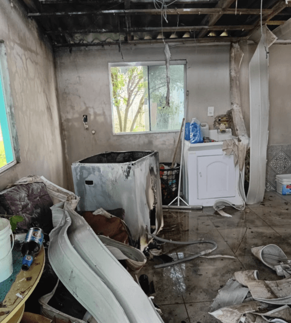 Quando a guarnição chegou ao local, o fogo já havia sido controlado por vizinhos e pelo proprietário. Segundo o morador, as chamas tiveram início em uma máquina de lavar roupas, que ficou totalmente destruída. O incêndio causou estragos significativos na área de serviço e danos parciais na estrutura e no forro da residência, que possui cerca de 240 m² de área construída.