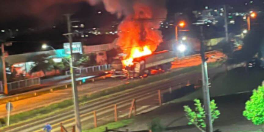 O condutor da carreta incendiada conseguiu sair por conta própria e recusou atendimento pré-hospitalar.