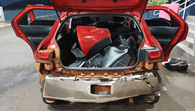 Com o auxílio de ferramentas, os agentes localizaram os fardos de maconha ocultos no interior do para-choque e nas laterais do porta-malas. O condutor confessou que o entorpecente seria levado de Foz do Iguaçu (PR) até Itapiranga (SC), afirmando que a passageira não tinha conhecimento da carga ilícita.