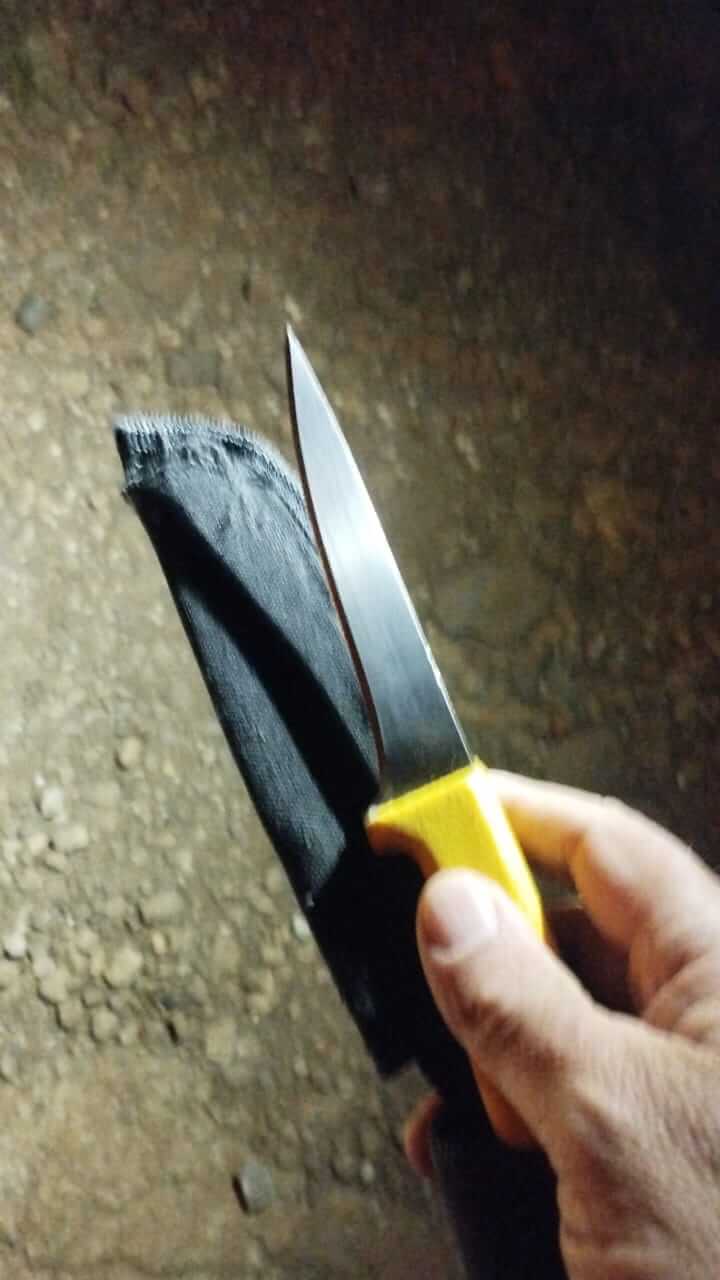 Ao perceber a aproximação da viatura, o indivíduo tentou esconder algo na cintura, o que motivou a equipe a dar voz de abordagem. Durante a busca pessoal, os policiais encontraram uma faca com lâmina de aproximadamente 13 centímetros.