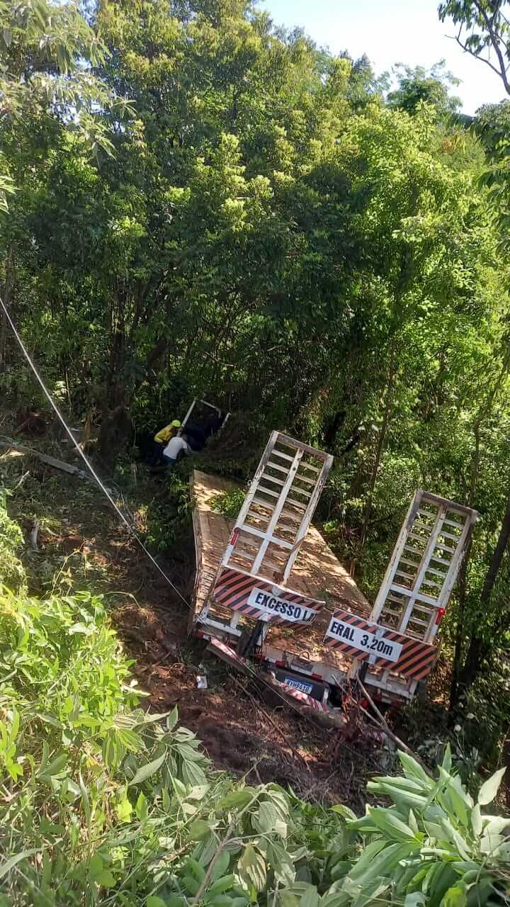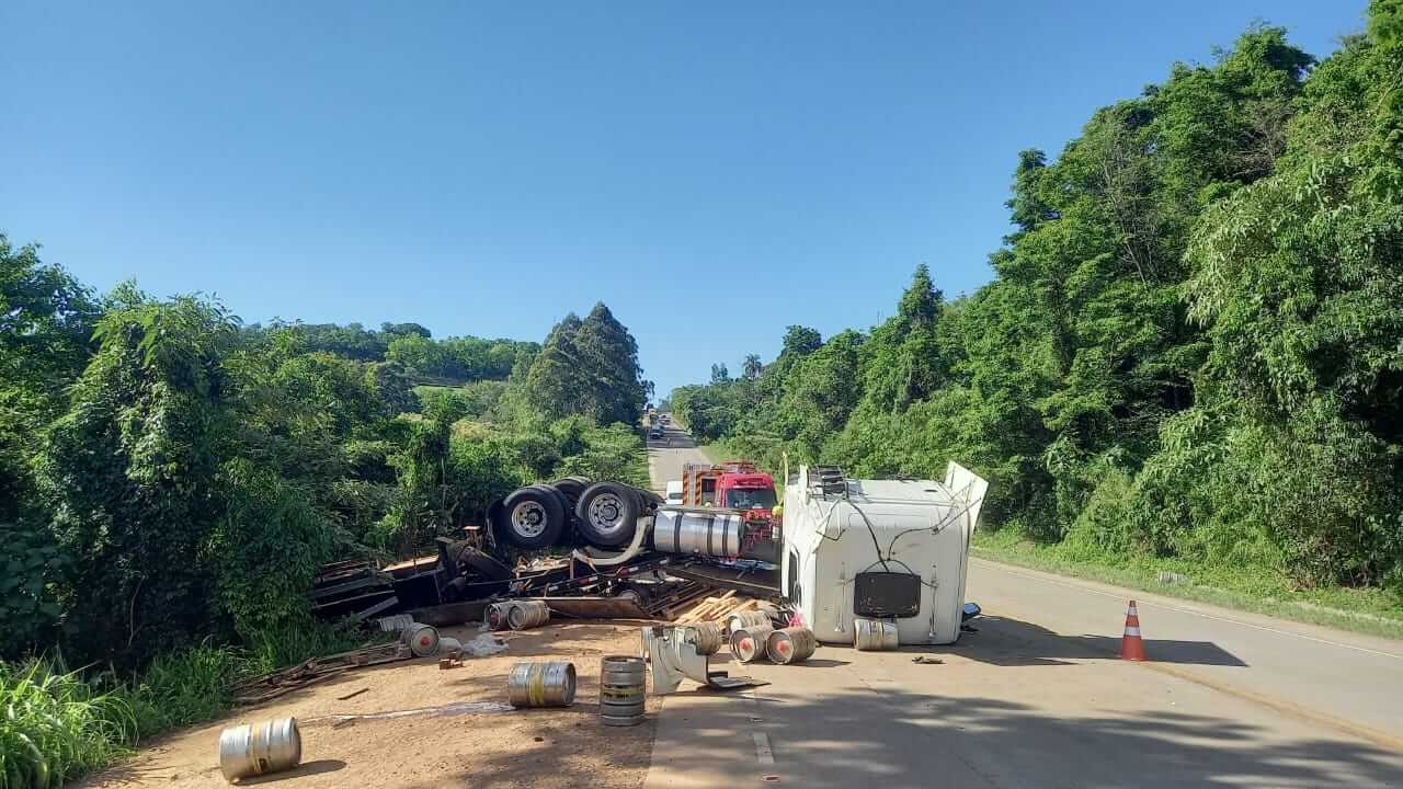 Segundo informações apuradas no local, um caminhão Scania branco, com placas Mercosul, colidiu na traseira de um caminhão prancha que transportava um rolo compressor. A Scania estava carregada com barris de chopp e latas de cerveja. Com o impacto, o caminhão prancha caiu em uma ribanceira de aproximadamente 10 metros.