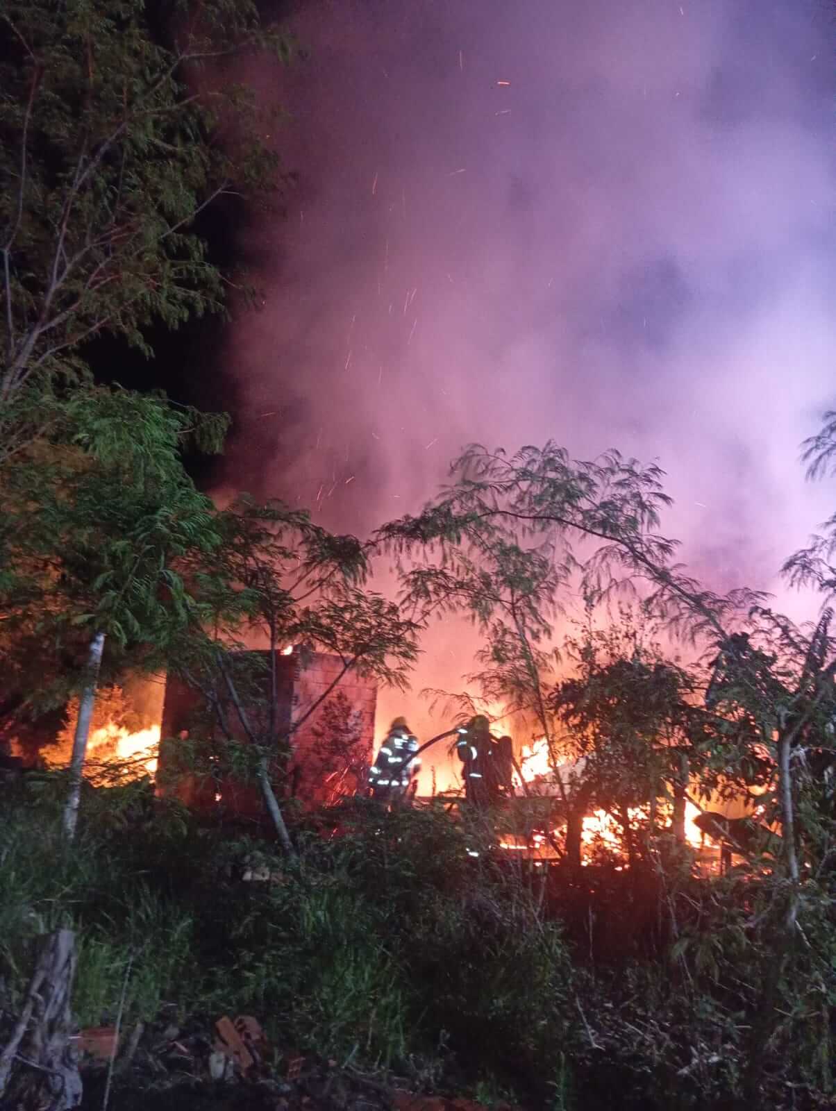 O Corpo de Bombeiros foi acionado por volta das 21h28min e constatou que a casa, uma residência unifamiliar de madeira com aproximadamente 25 metros quadrados, estava completamente tomada pelas chamas, com colapso total de paredes e teto. Após o corte da energia elétrica e a avaliação de riscos, os bombeiros iniciaram o combate direto ao fogo, realizando também o rescaldo para evitar a reignição. Nenhum bem pôde ser salvo, e a residência ficou totalmente destruída.