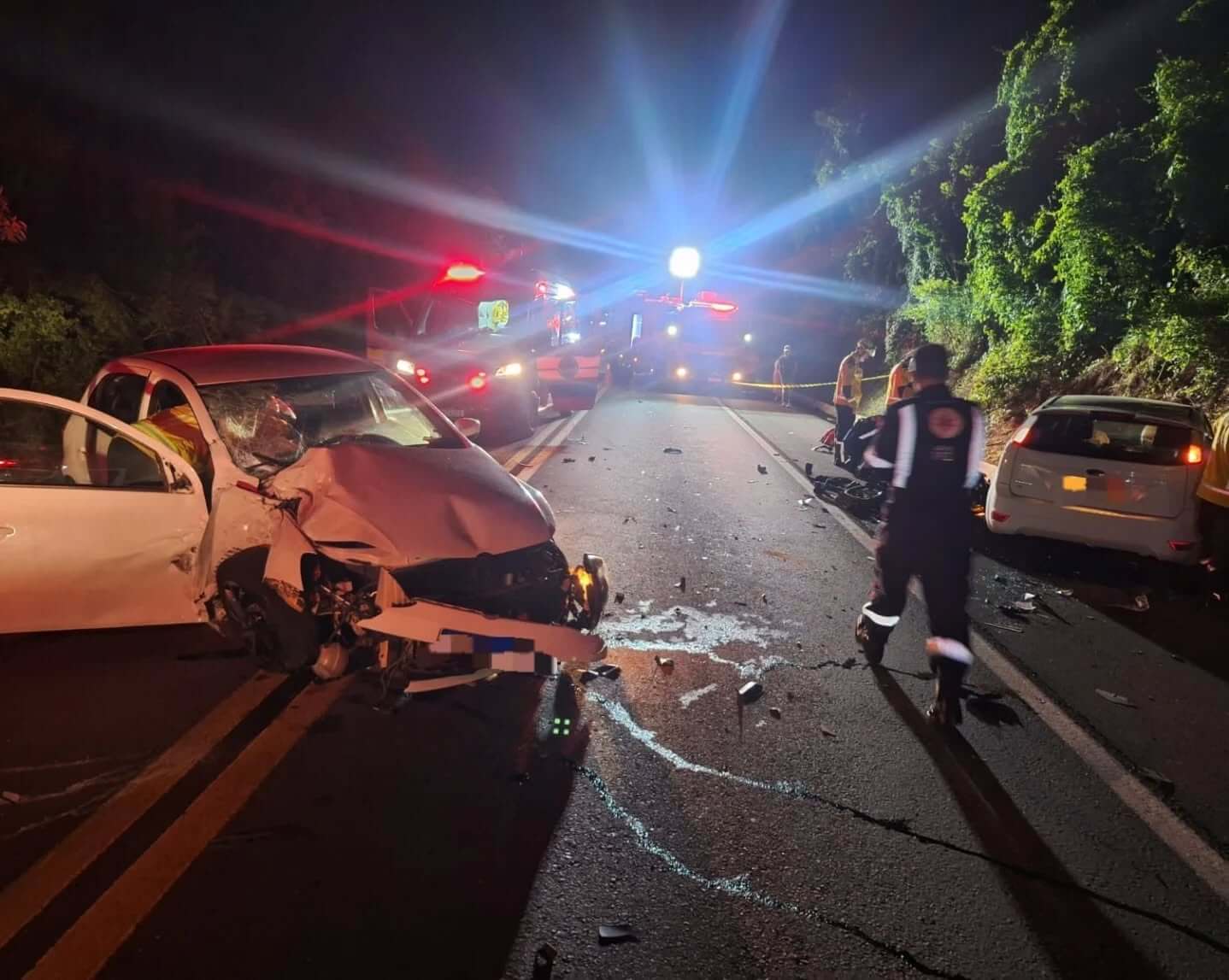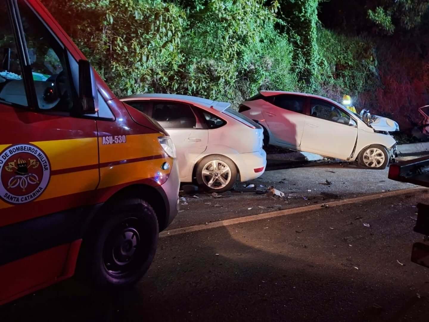 Um grave acidente de trânsito foi registrado por volta das 20h55 deste domingo (2), no km 510 da BR-282, no interior de Xanxerê. A colisão envolveu três veículos, um Focus, um Gol e uma motocicleta, e resultou na morte de duas pessoas.