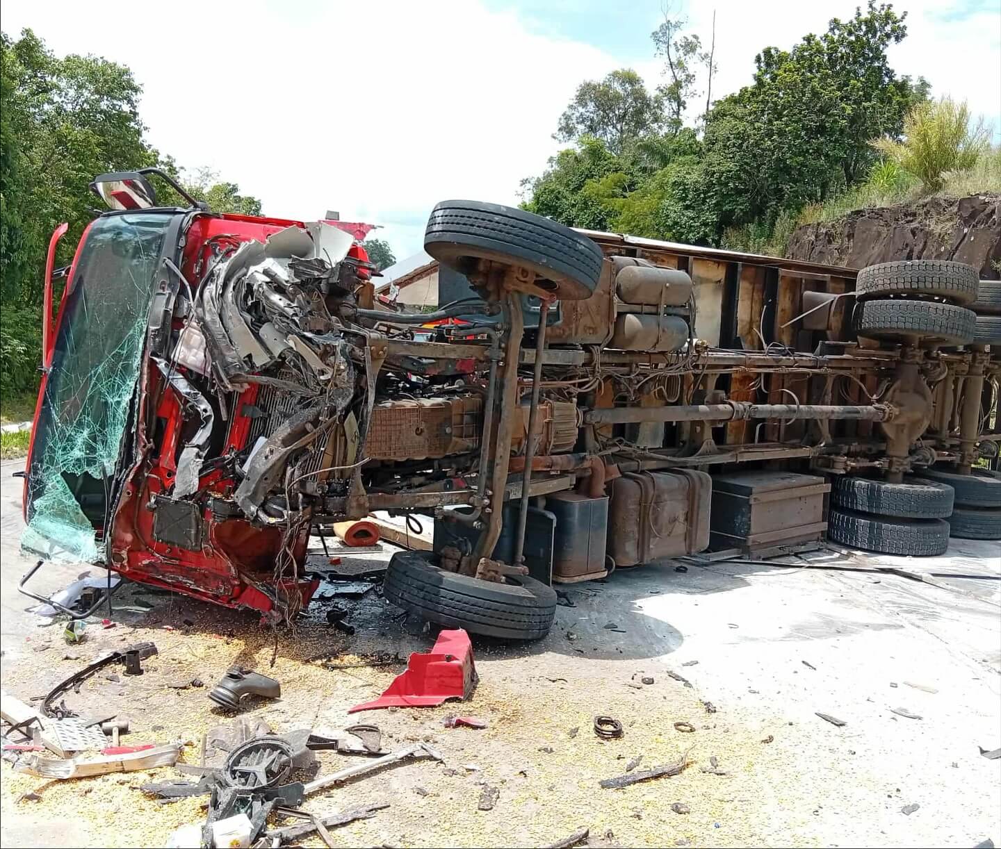 O motorista da carreta recusou atendimento médico. A Polícia Rodoviária Federal esteve no local para controlar o tráfego e auxiliar na limpeza da pista.