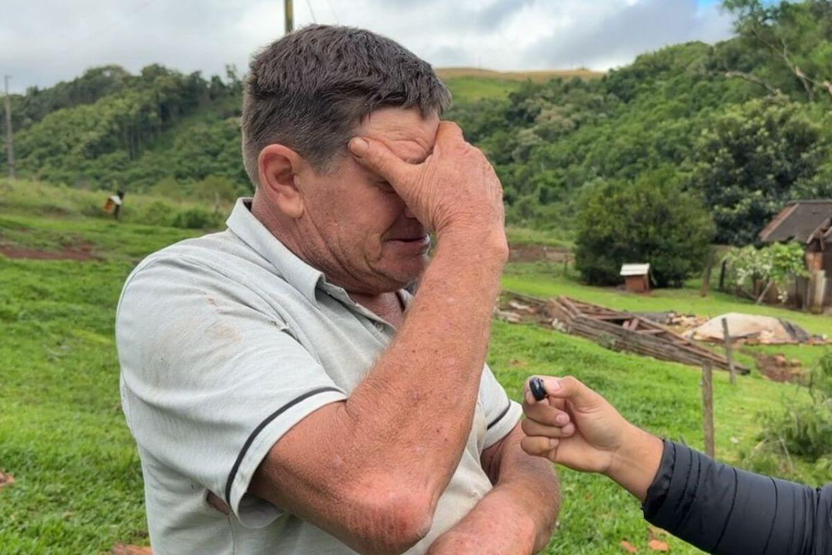 Entre os atingidos está o agricultor Davi Ecker, de 67 anos, que viu sua propriedade ser totalmente destruída.